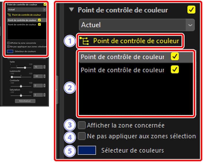 Effectuez votre sélection dans la liste des points de contrôle de couleur présents sur la photo actuelle.