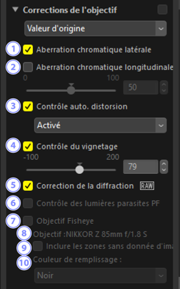 Outil Corrections de l'objectif
