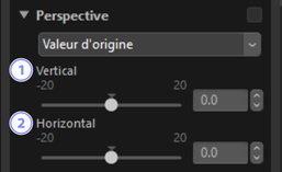 Réglez la perspective horizontalement ou verticalement de −20 à +20.