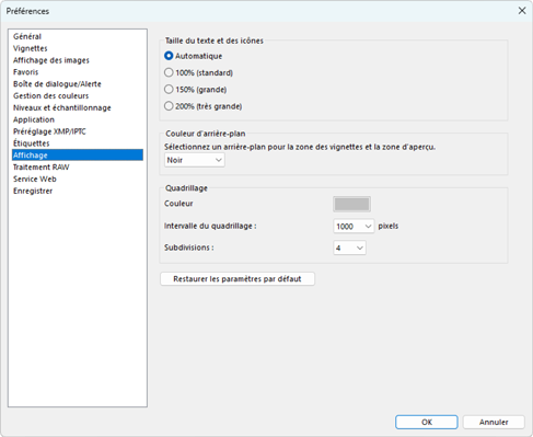 - Réinitialisez toutes les rubriques de la catégorie [Affichage] sur leurs valeurs par défaut.