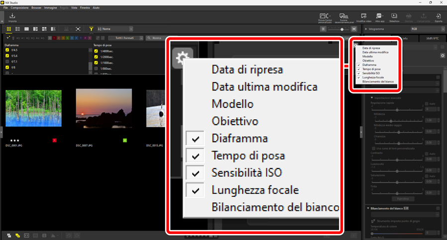 - Filtrare le immagini per nome file o parole chiave nei metadati XMP/IPTC.