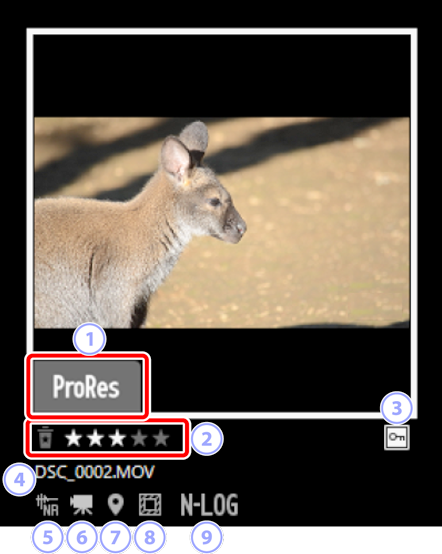 - Visualizzato su video protetti. È possibile aggiungere o rimuovere la protezione spostando il mouse sopra la miniatura (0 Protezione delle immagini).