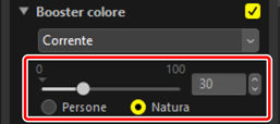 Selezionare uno strumento e regolare le impostazioni nella tavolozza regolazioni. Qui abbiamo selezionato [Natura] e impostato il cursore su +30.