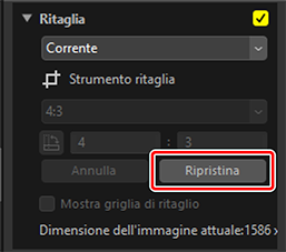 Quando l'immagine viene ritagliata, [Procedi] passa a [Ripristina]. Fare clic su [Ripristina] per ripristinare il ritaglio.