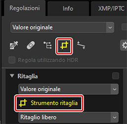 ) lo strumento di ritaglio. È inoltre possibile fare clic sull'icona dello strumento nella parte in alto della tavolozza regolazioni.