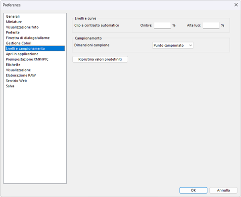 - Ripristinare tutte le voci nella categoria [Livelli e campionamento] ai valori predefiniti.