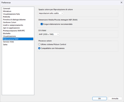 Regolare le impostazioni per l'elaborazione delle immagini RAW.