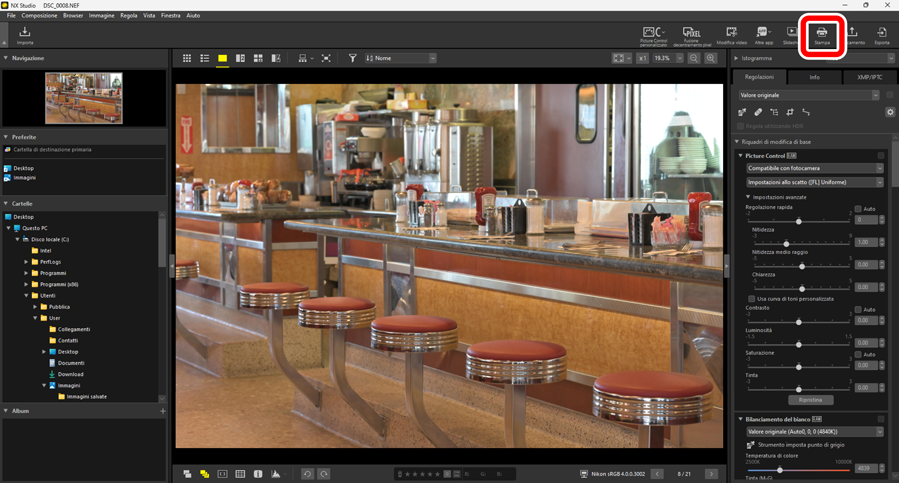 Per stampare le immagini su una stampante collegata al computer, selezionare le foto e fare clic su [Stampa] nella barra strumenti.