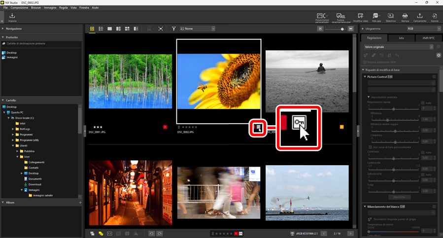 Le modifiche alla protezione effettuate dopo aver selezionato più immagini utilizzando il tasto controllo (o, in macOS, il tasto comando) o il tasto Maiusc si applicano a tutte le immagini nella selezione.