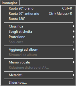 - [Copia dati IPTC]/[Incolla dati IPTC]: copiare o incollare i dati IPTC da o nell'immagine attuale.