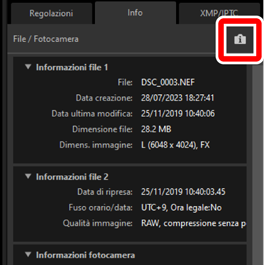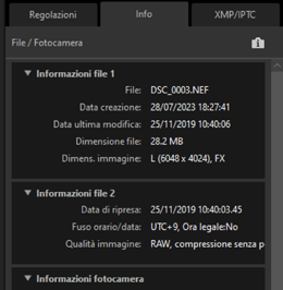 - Mostra le informazioni immagine e le regolazioni per le immagini selezionate.
