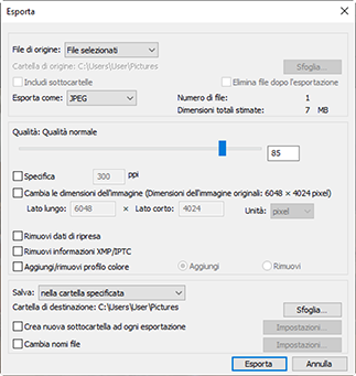 Dopo aver migliorato le immagini, è possibile salvarle come file JPEG, HEIF o TIFF con nuovi nomi. Le immagini possono quindi essere utilizzate con altro software.