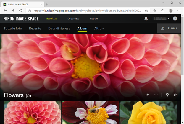 Le immagini salvate nei formati appropriati possono essere caricate direttamente su NIKON IMAGE SPACE (0 Servizi web, NIKON IMAGE SPACE). È inoltre possibile stampare le immagini e condividerle con familiari e amici (0 Stampa delle foto).