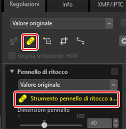 ) il pennello di ritocco. È inoltre possibile fare clic sull'icona dello strumento nella parte in alto della tavolozza regolazioni.