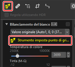 ) lo strumento di campionamento punti di grigio. È inoltre possibile fare clic sull'icona dello strumento nella parte in alto della tavolozza regolazioni.