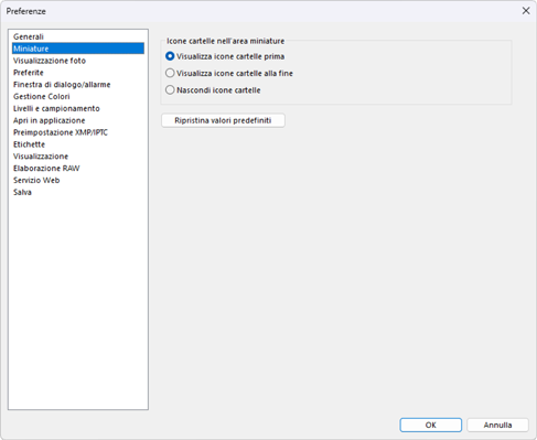 - [Visualizza icone cartelle alla fine]: le sottocartelle sono elencate per ultime, dopo le immagini.