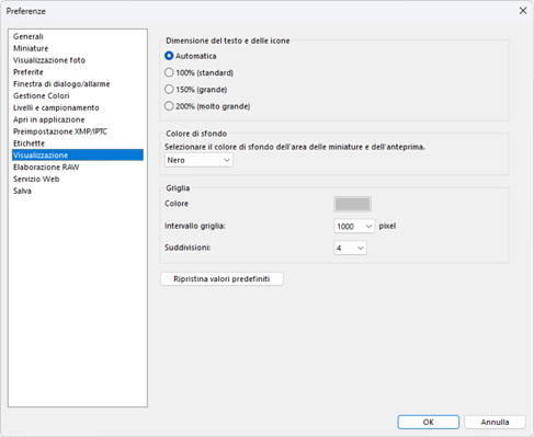 - Ripristinare tutte le voci nella categoria [Visualizzazione] ai valori predefiniti.