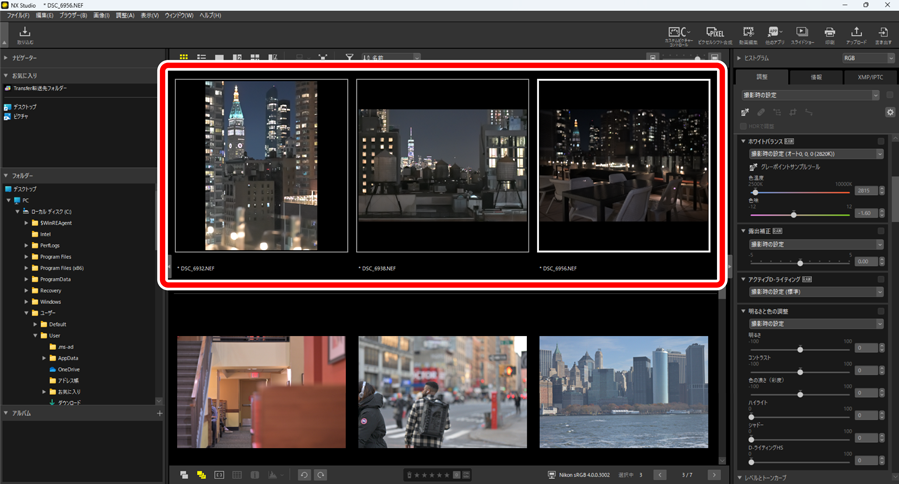 - コピーした調整内容を貼り付けるときに、複数の画像を選択する(0調整内容をコピーして貼り付ける)。
