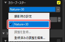 [調整を登録]ダイアログで任意の名前を設定します。ここでは「Nature+30」としています。名前を決定したら[OK]をクリックします。