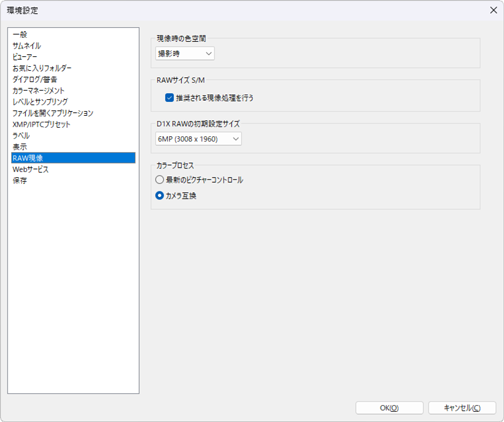 - [推奨される現像処理を行う]にチェックを入れると、[サイズS]または[サイズM]のRAW画像に対して推奨される現像処理を行います。