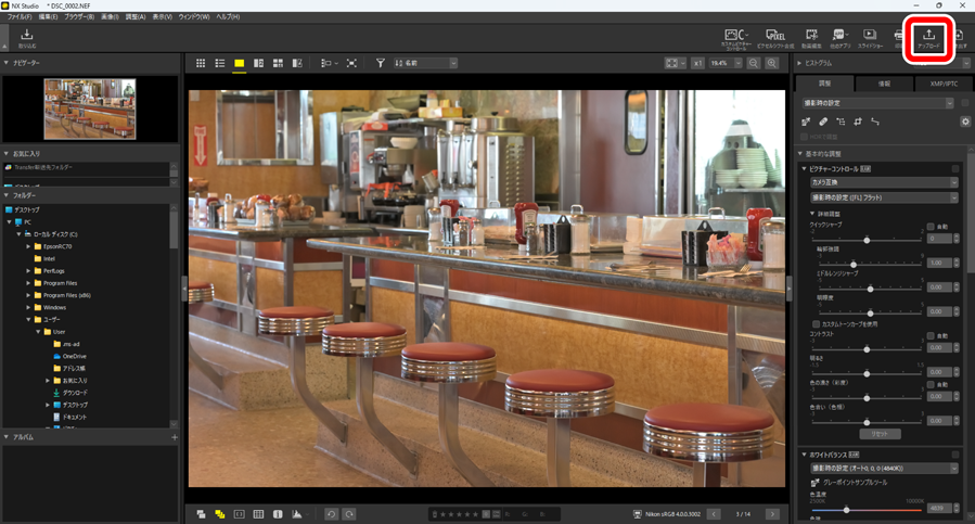 - RAW画像を調整時に[変換しない]を選んだ場合、NX Studioで調整した内容は反映されずに撮影時の状態でアップロードされます。