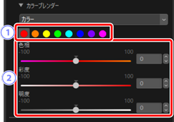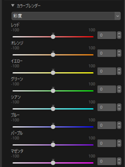 色ごとの彩度を調整できます。[カラー]で[彩度]を調整している場合、その調整結果も反映されています。
