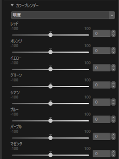 色ごとの明度を調整できます。[カラー]で[明度]を調整している場合、その調整結果も反映されています。