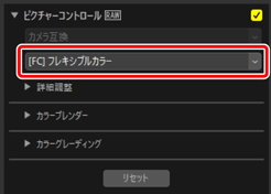 - [フレキシブルカラー]を元にしたカスタムピクチャーコントロールは、カメラでは微調整できません。