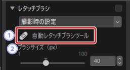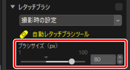 )にするとレタッチブラシを使用できます。 [ブラシサイズ(px)]