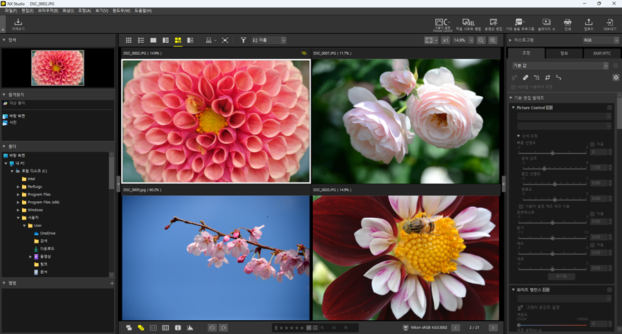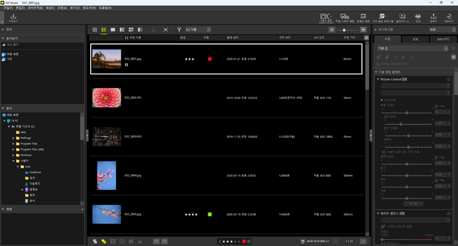 선택한 폴더에 화상을 나열합니다. 파일 이름, 라벨 또는 기타 기준에 따라 화상을 정렬할 수 있습니다.