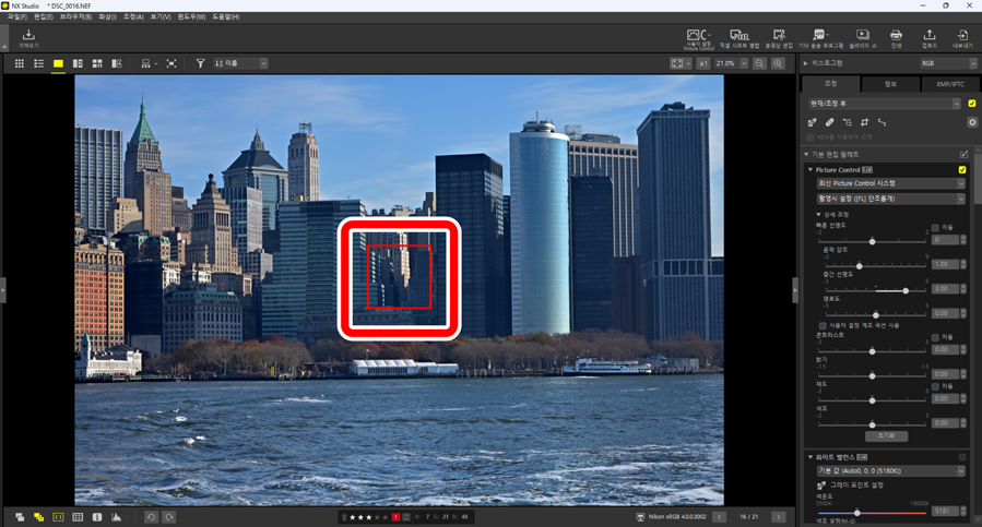 - 초점 포인트는 COOLPIX A 또는 Nikon 디지털 SLR 또는 미러리스 카메라에 연결된 CPU 렌즈로 촬영한 모든 화상에 표시할 수 있습니다.