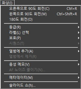 - [IPTC 정보 복사]/[IPTC 정보 붙여넣기]: 현재 화상에서 IPTC 정보를 복사하거나 붙여 넣습니다.