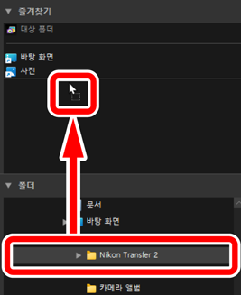 [폴더] 목록에서 끌어서 놓고 폴더를 즐겨찾기에 추가합니다.