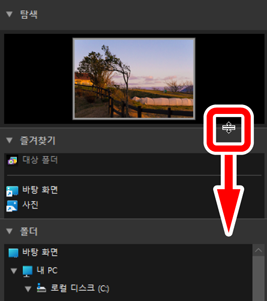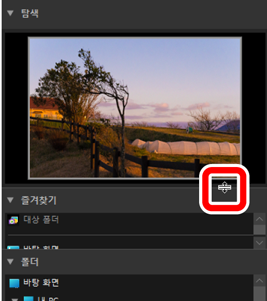 버튼을 클릭하면 [탐색], [즐겨찾기], [폴더] 및 [앨범] 하위 팔레트를 표시하거나 숨길 수 있습니다.
