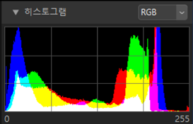 현재 화상에 대한 히스토그램입니다. 히스토그램을 표시하거나 숨기려면