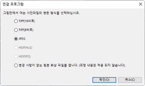 - 선택한 형식으로 사진을 저장하고 선택한 응용 프로그램에서 해당 사진을 열려면 [확인]을 클릭합니다.