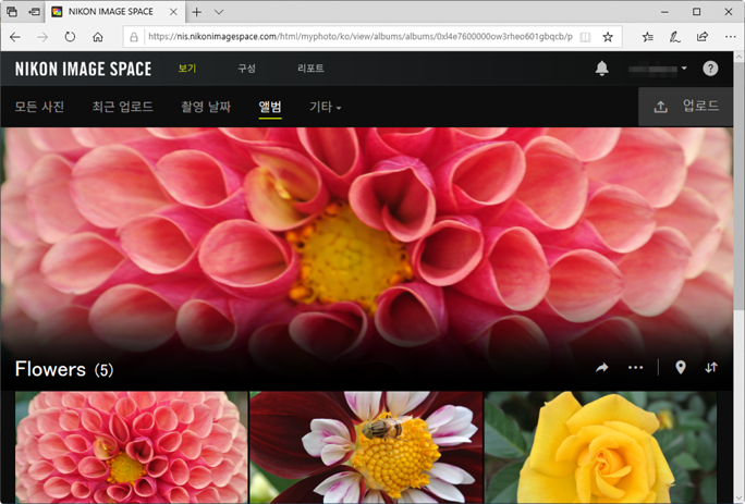 적합한 형식으로 저장된 사진은 NIKON IMAGE SPACE에 직접 업로드할 수 있습니다(0 웹 서비스, NIKON IMAGE SPACE). 화상을 인쇄하여 가족 및 친구와 공유할 수도 있습니다(0 화상 인쇄).