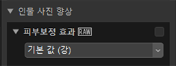 스킨 소프트닝을 조정합니다. 이 도구는 카메라 메뉴에서 스킨 소프트닝 효과에 대해 [OFF] 이외의 옵션을 선택하여 촬영한 RAW 및 병합된 픽셀 시프트 사진에만 사용할 수 있습니다.