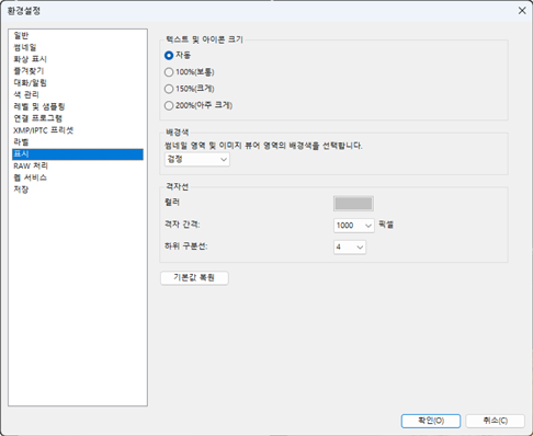 - [컬러]: 격자선 색상을 선택합니다.