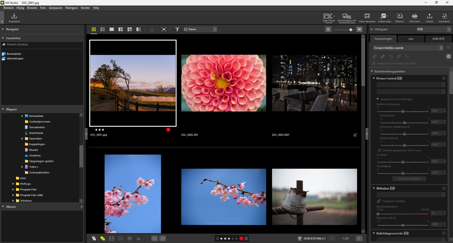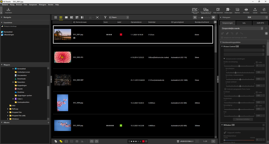 Geef een overzicht van de foto's in geselecteerde mappen. Foto's kunnen worden gesorteerd op bestandsnaam, label, of andere criteria.