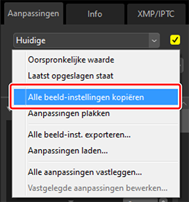 Selecteer [Alle beeld-instellingen kopiëren] in de aanpassingenmanager.