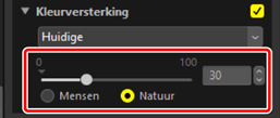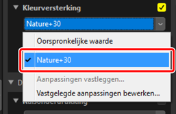 Selecteer een tool en pas instellingen aan in het aanpassingenpalet. Hier hebben we [Natuur] geselecteerd en de schuifbalk ingesteld op +30.