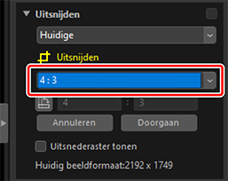 De beeldverhouding kan worden gewijzigd nadat u het formaat van de uitsnede hebt gewijzigd en de uitsnede hebt gepositioneerd.
