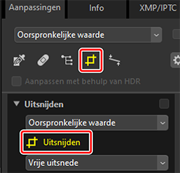 ) het Uitsnijden. U kunt ook op het pictogram voor de tool klikken bovenaan het Aanpassingen-palet.