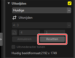 Als de foto is uitgesneden, verandert [Doorgaan] in [Resetten]. Klik op [Resetten] om de uitsnede te resetten.
