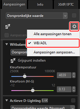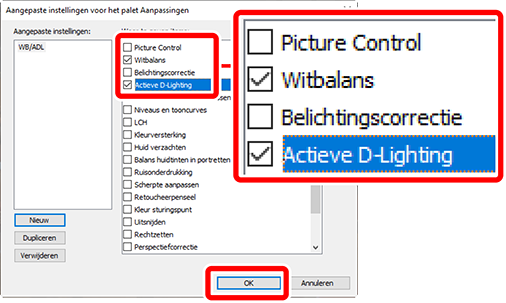 - [Actieve D-Lighting]*: pas Actieve D-Lighting aan (0 De tool Actieve D-Lighting).
