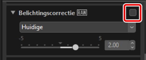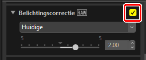 - [Objectiefcorrecties]: corrigeer voor axiale en laterale chromatische aberratie en andere artefacten veroorzaakt door het objectief (0 De tool Objectiefcorrecties).