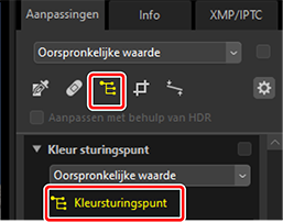 ) het kleursturingspunt. U kunt ook op het pictogram voor de tool klikken bovenaan het Aanpassingen-palet.