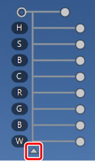 U kunt op het driehoekje onderaan of bovenaan de schuifbalken klikken om tussen het huidige kleurmodel ([HCV], [RGB] of [KVH]) en [Alles] te schakelen.