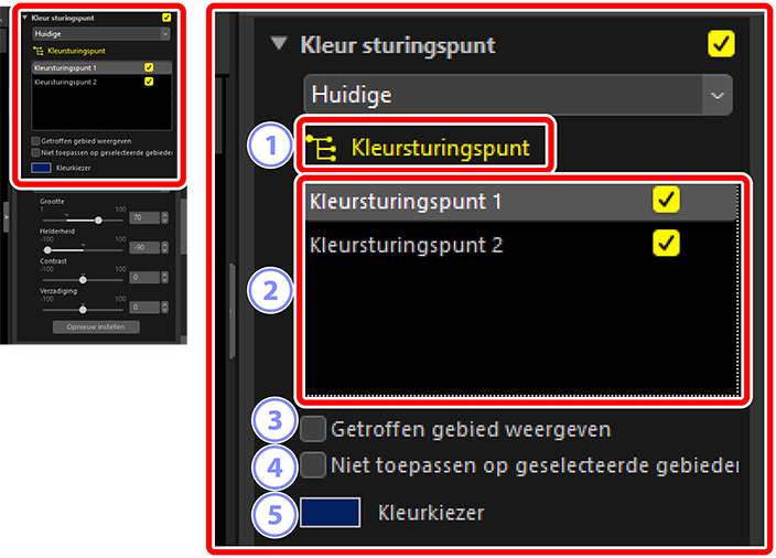 - Aan elke foto kunnen meerdere sturingspunten worden toegevoegd. Herhaal stap 3 tot en met 5 om naar wens kleursturingspunten toe te voegen.